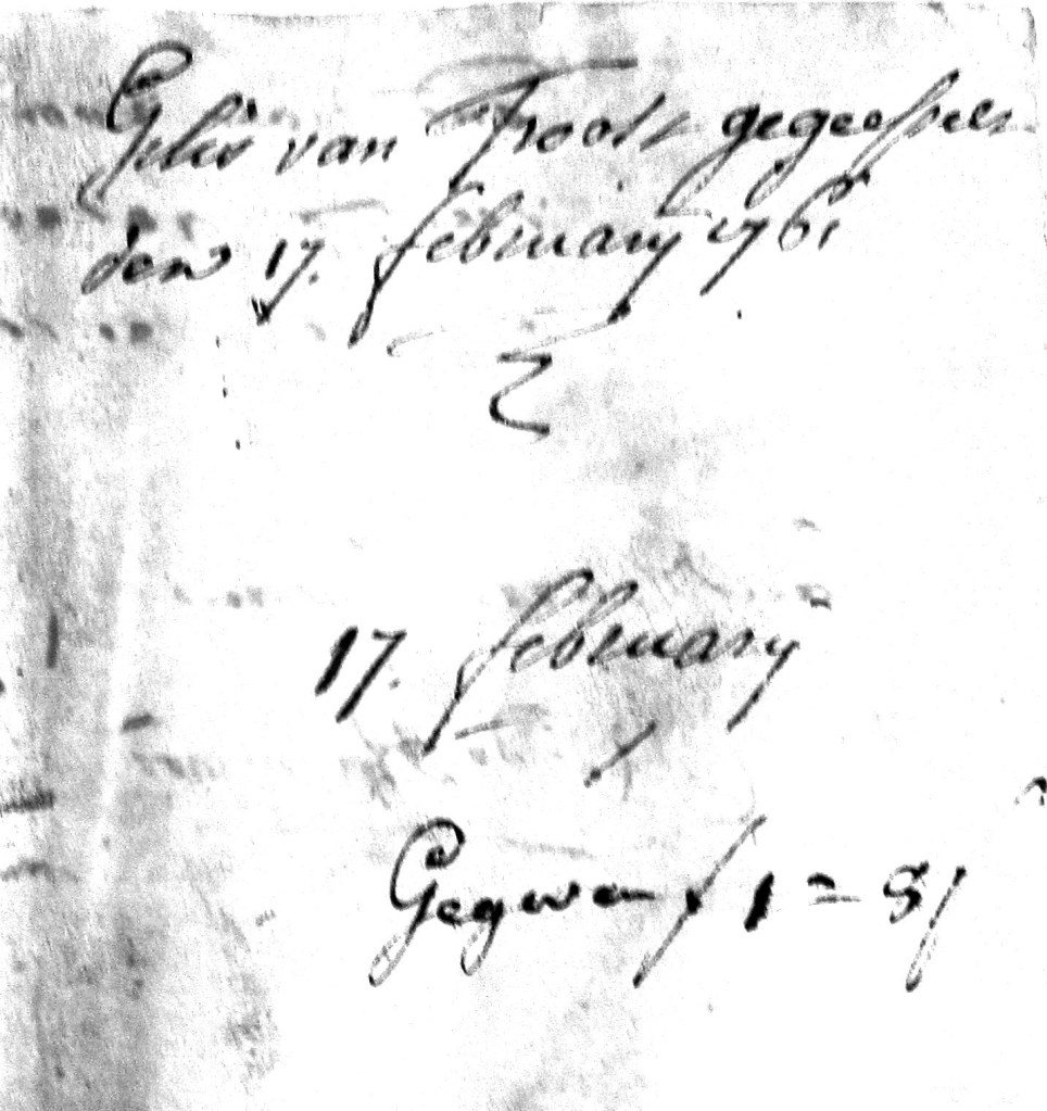 1. Op 1 en 5 juni 1634 gekocht van Adriaen Vermatten 3 koeien voor 3 p. Volgens een contract van 3 maart 1636 ontving Van der Borght de koopsom.