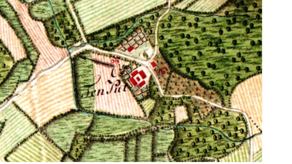 Een hoeve genaamd “Te Putte” bestaande uit een woonhuis gebouwd in steen en bedekt met stro. Het woonhuis heeft zes plaatsen op gelijkvloers, een wasplaats, bakkerij, oven, twee kelders en een zolder in goede staat. Verder op de hoeve vier schaapsstallen in slechte staat, vijf stallen voor de paarden en de koeien in goede staat, twee schuren, een bergplaats, en een groentetuin. Dit alles met 57 bunder twee dagwand 24 roeden (72 ha 38 a 17 ca) land, weide en bos. Deze goederen zijn gelegen en opgedeeld als volgt:
