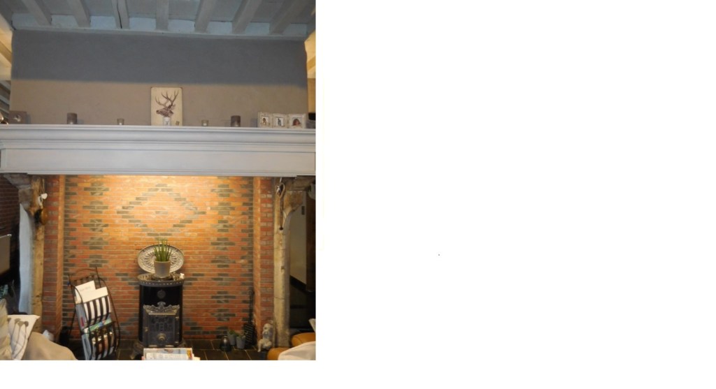 eeuwse zandstenen schoorsteenmantel is in het fraai gerestaureerde huis bewaard