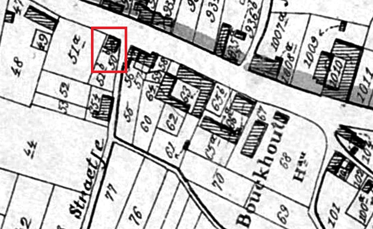 De gemeente had de grond gekocht van Maria Cornelia De Smedt, de vrouw van Jan Baptist Van Houdenhove op 24 maart 1850. De koper kon over het gebouw beschikken zodra de nieuwe schoolgebouwen (achter het voormalig gemeentehuis) in gebruik werden genomen en dat ten laatste op 1 januari 1873. Hij moest 10% van de koopsom uiterlijk drie dagen na de toewijzing betalen en de rest binnen de maand in de handen van vertegenwoordigers van de gemeente in het kantoor van de notaris. Deed hij dat niet, dan kwam er een intrest van 5% bij.
