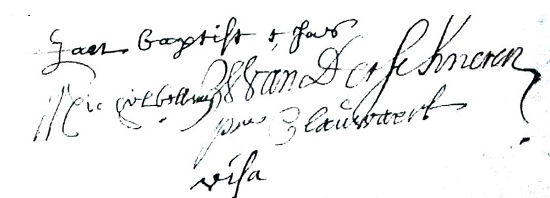 2. Joanna, gedooptvoor 1600, getrouwd te Hekelgem op 18 juni 1628 met Joannes Van Boven. Zij hadden 5 kinderen te Hekelgem gedoopt: