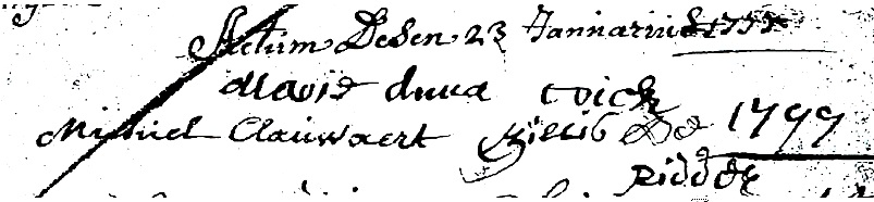 – gegeven aan Jan Baptist Clauwaert op 28 januari 1748: 1 – 1 – 0.