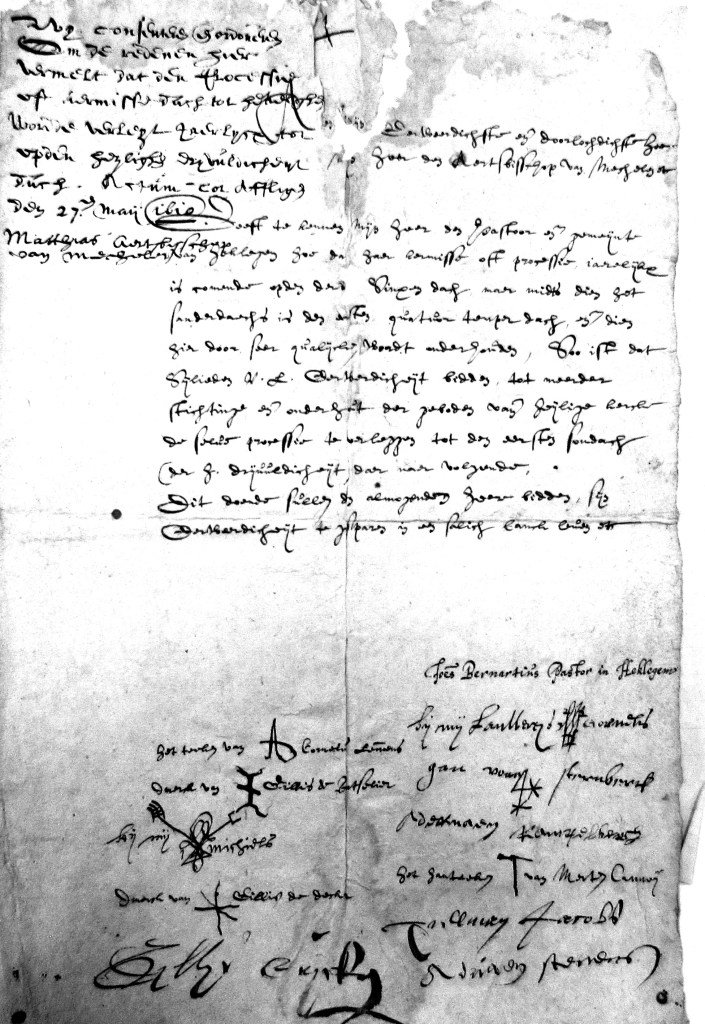 Als getuigen tekenden Geeraerdt Carnoy en Geerardt Pauwels, Elisabeth, die niet kon schrijven, tekende met een kruis.