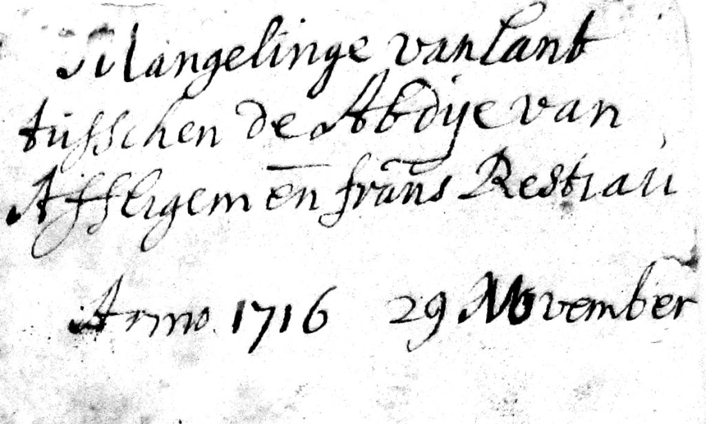 1716. De abdij Affligem ruilt gronden met koster Resteau[8].